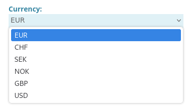 options="EUR;CHF;SEK;NOK;GBP;USD" />