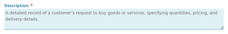 <item name="description" type="textarea" options="height: 15em;" label="Description" />
